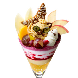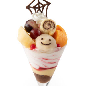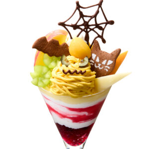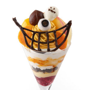 果実のおいしさと、おばけたちのいたずらが出会った楽しいパフェが完成しました。この秋にお届けする<おいしいハロウィン>をお楽しみください。