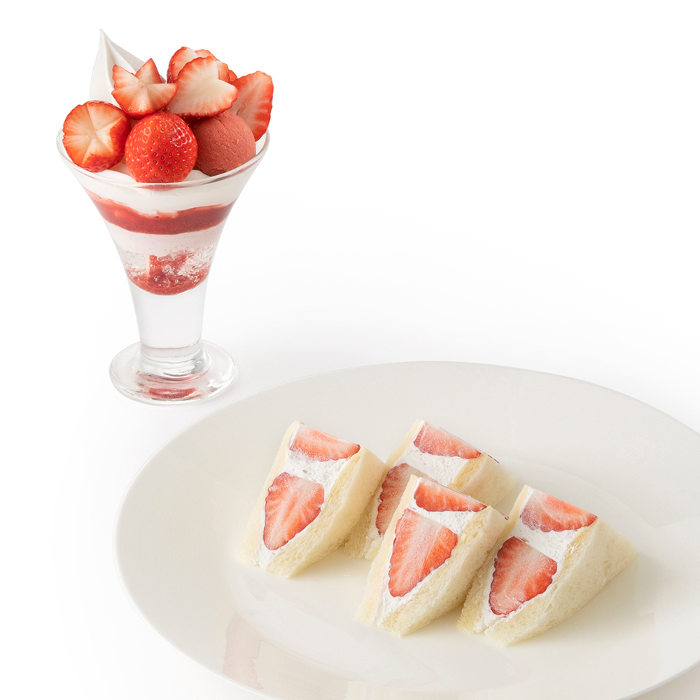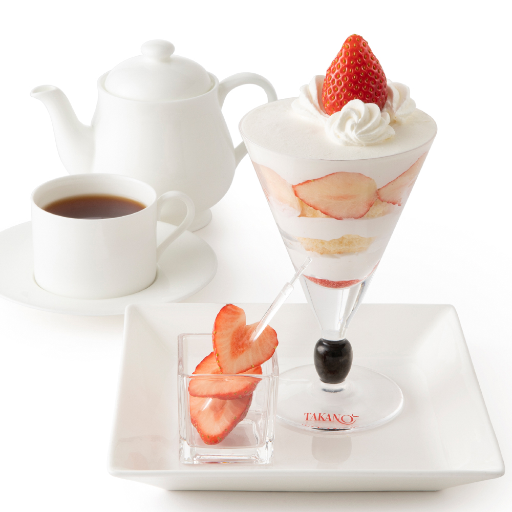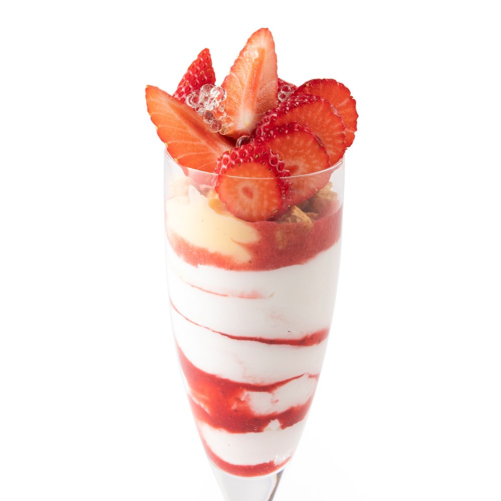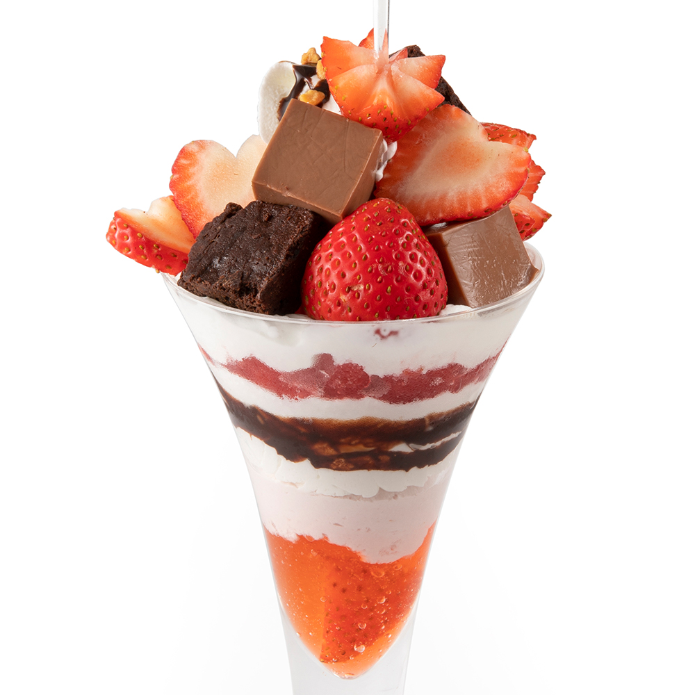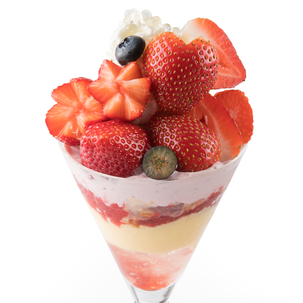 シーズナルメニュー「苺のパフェ」の2倍の量の苺を飾りつけたパフェです。