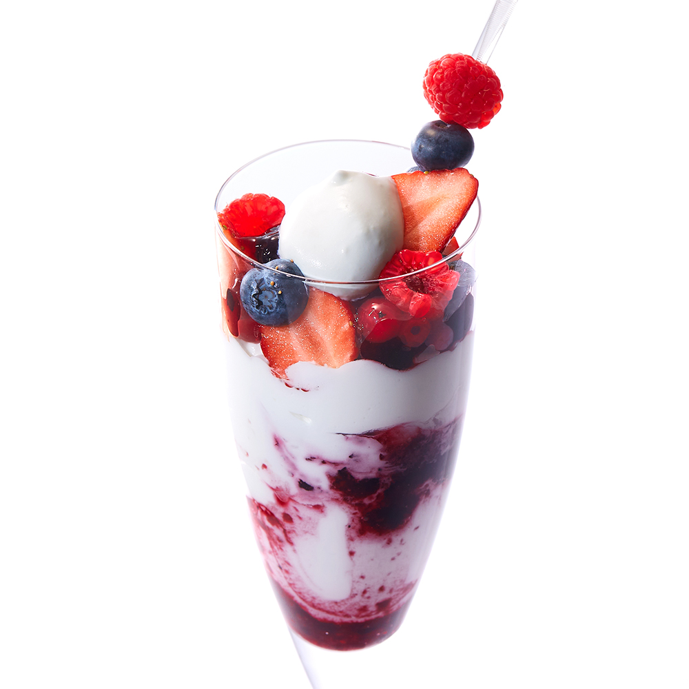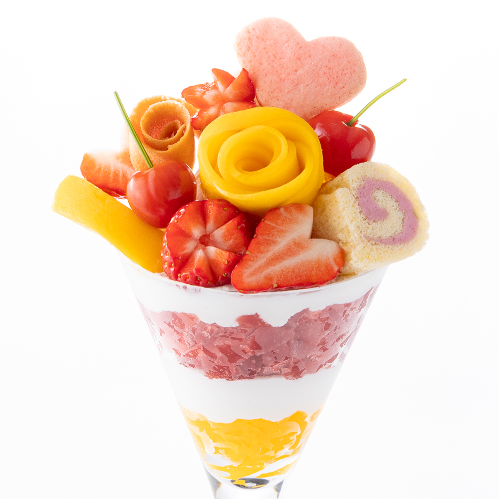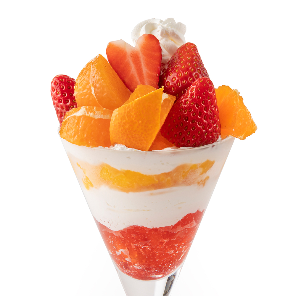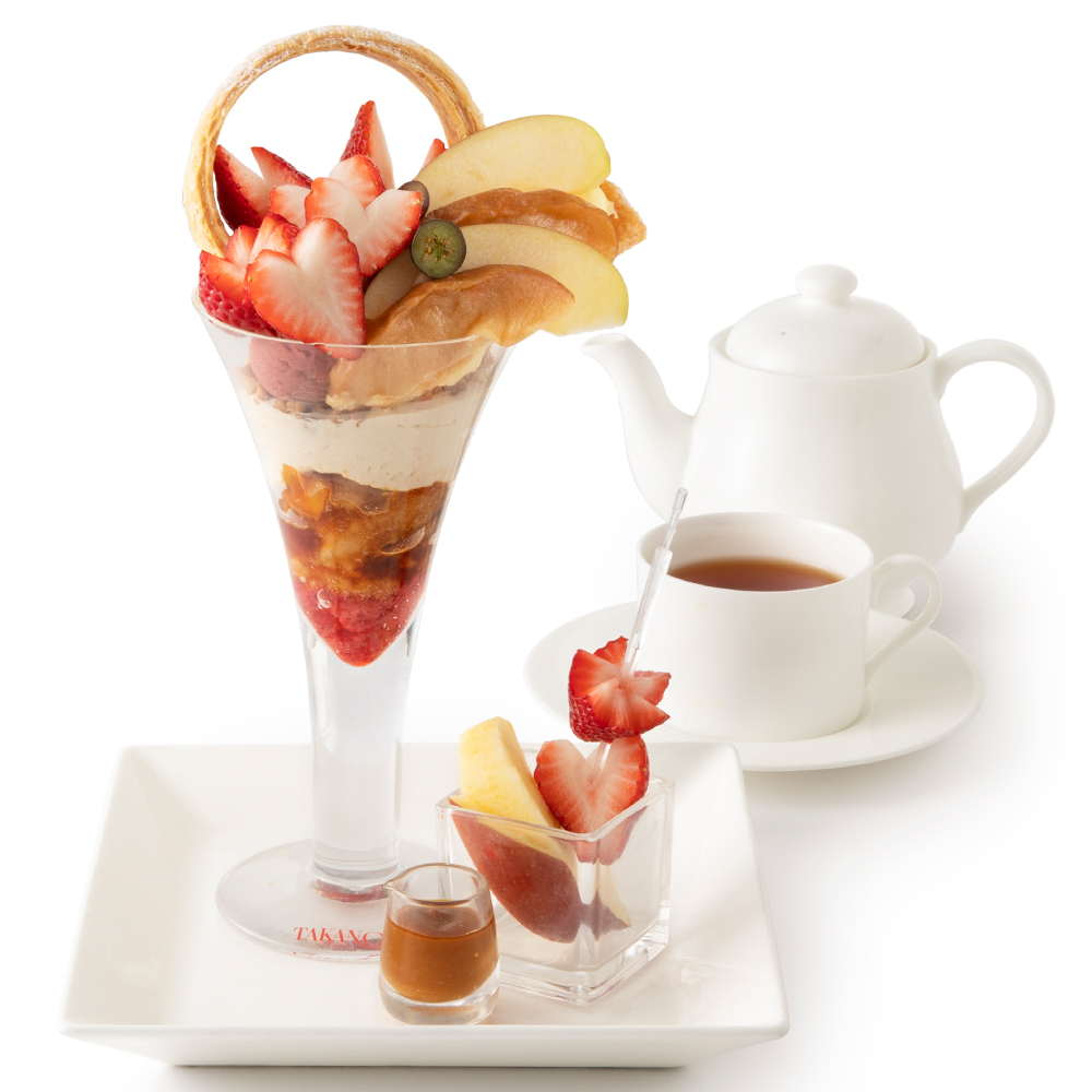 シーズナルメニュー「苺のパフェ」の2倍の量の苺を飾りつけたパフェです。
