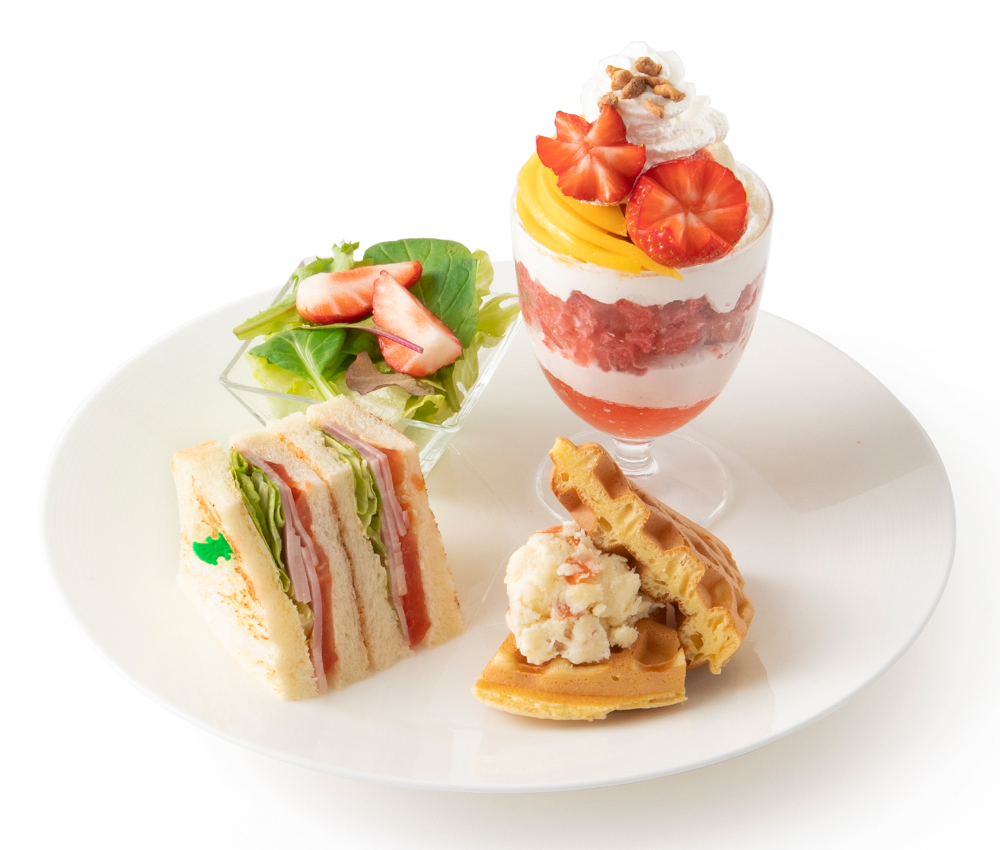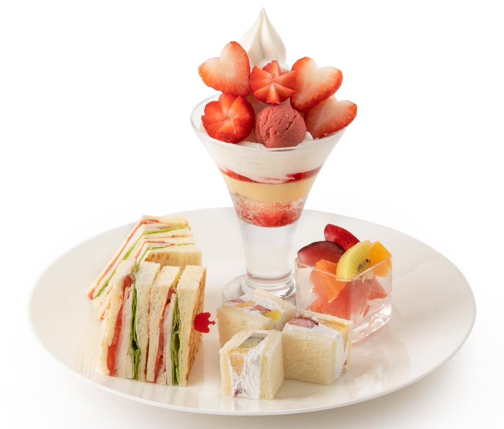 デザートは「ミニフルーツパフェ」or「ミニフルーツみつまめ」or「ミニ 苺と柑橘のパフェ ※4/24(金)まで」