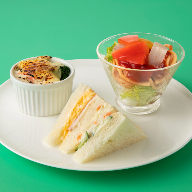 ナポリタン&サラダ、ハムと卵・コールスローのサンドウィッチなど