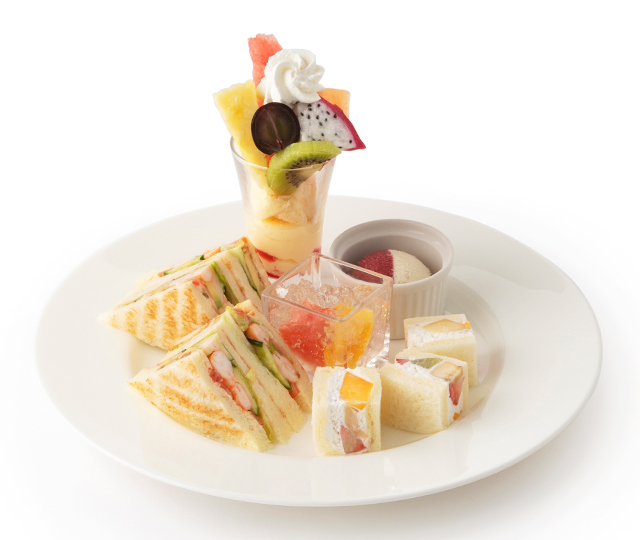 サンドウィッチとデザート(ミニパフェ / キューブグラス)が1皿でお楽しみいただけるメニューです。