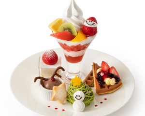 デザートは「ミニフルーツパフェ」or「ミニフルーツみつまめ」or「ミニ 苺とベリーのパフェ ※12/25(木)まで」