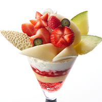 ・季節の果実タカノセレクションパフェ〜マスクメロン・ベリー・洋梨〜