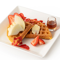 「ナイト ベーコンとチーズのワッフルサンド」「ナイト フルーツワッフルサンド」「ナイト チョコバナナワッフル」「ナイト 苺と洋梨のワッフル」よりお2つお選びください。