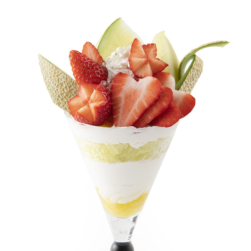 新宿と縁のある静岡県産マスクメロンと季節のフルーツを組み合わせたパフェをご用意しました。香り高くコクのある味わいの紅ほっぺを、ソフトクリームやメロングラニテ、苺シャーベットと合わせてお楽しみいただけます。