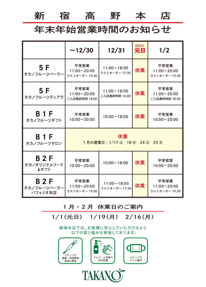 【新宿本店】年末年始営業時間のお知らせ(2025-2026)
