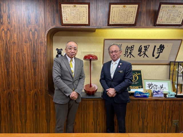 新宿エイサー祭り大会委員会 髙野吉太郎会長と新宿エイサー祭りの今後の展望、そして「沖縄県産果実」のブランド価値向上に向けて連携強化、意見交流が行われました。