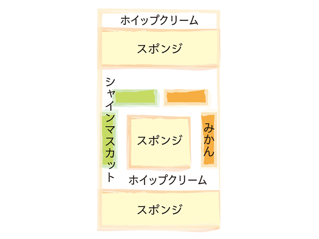 スポンジにみかんとシャインマスカットをサンドし輪切りのみかんを飾りました。