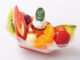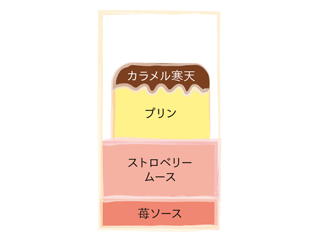 ストロベリームースにプリンをのせてフルーツを飾りました。