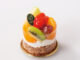 ホイップクリームを巻いたロールケーキにフルーツをトッピング。