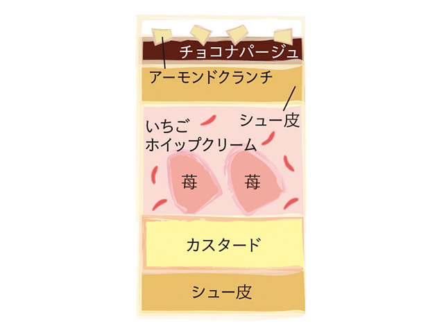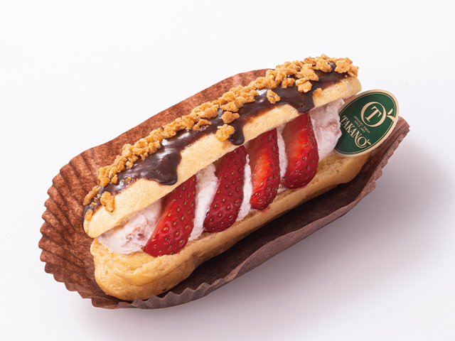 エクレア皮にカスタードクリーム、苺ホイップクリームを絞り、苺を飾りました。