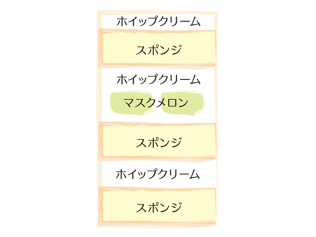 マスクメロンをサンドして華やかにトッピングしたアニバーサリーデコレーションケーキ。