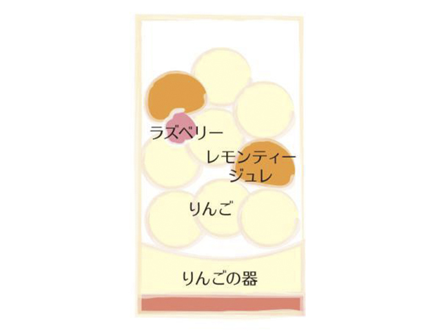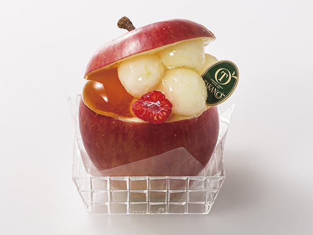レモンティージュレとくり抜いたりんごをつめた、果実を丸ごと楽しめるデザート。