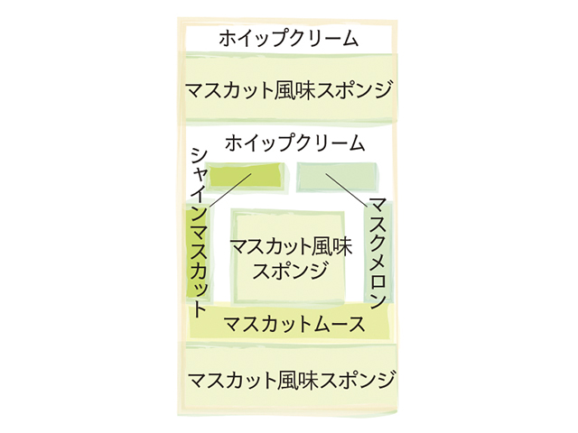 マスカット風味のスポンジ、マスクメロン、シャインマスカットで仕立てた季節のデコレーションケーキ。
