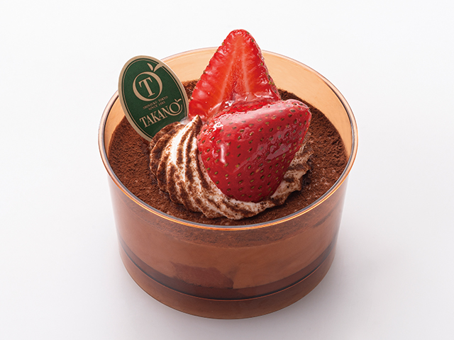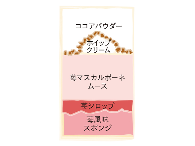 苺シロップを浸した苺風味のスポンジと苺マスカルポーネムースを重ね苺をトッピング。