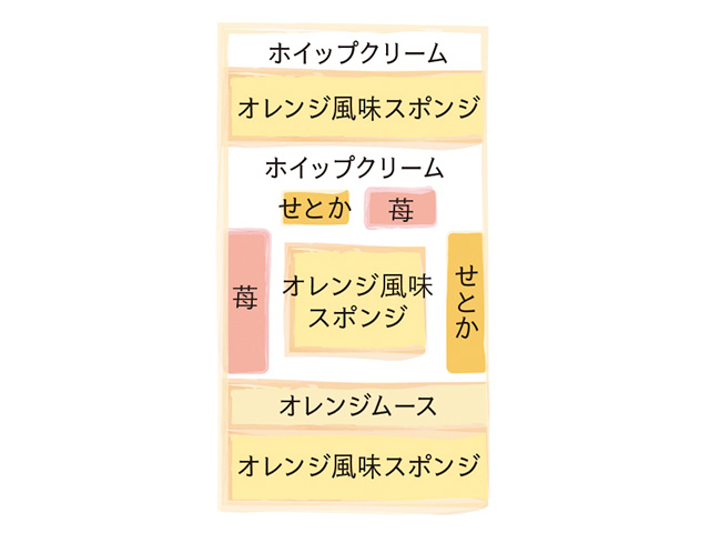 オレンジ風味のスポンジ、ホイップクリーム、せとかと苺で仕立てた季節のショートケーキ。