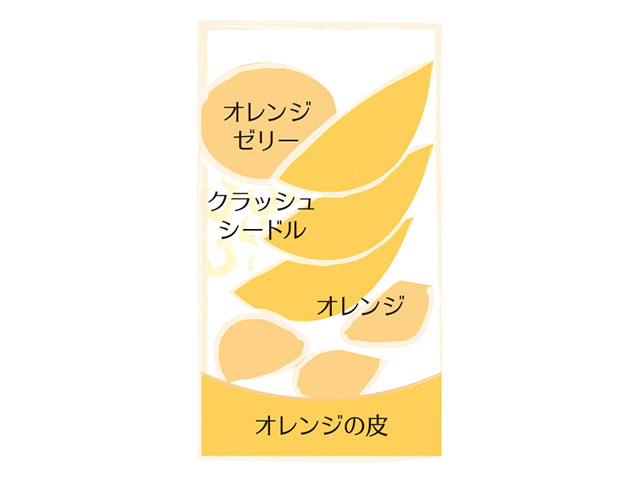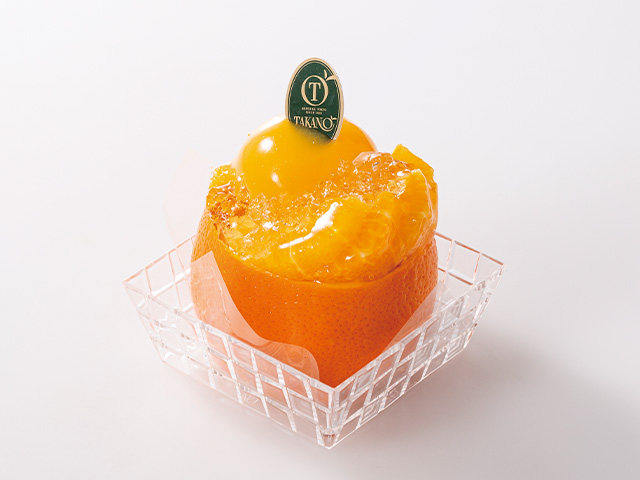 オレンジを丸ごと使い、オレンジの果肉とゼリーで仕立てたデザート。