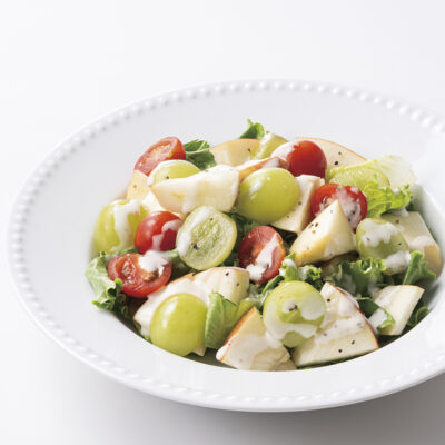 フルーツ専門店である新宿高野が提案するフルーツと野菜のコンビネーションサラダ。いつものサラダにフルーツが加わることで彩りが増し、野菜のうまみを引き立たせます。